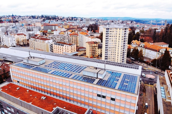 After several months of construction, the new photovoltaic system on the roof of the School of Management Fribourg has been operational since the end of 2019.