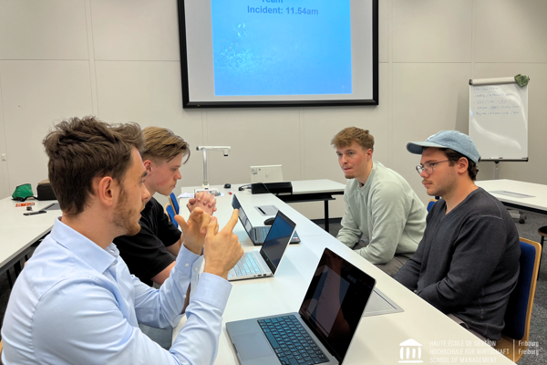 Dans le cadre du cours à option "Corporate Risk Management" (CRM), les étudiantes et étudiants en Bachelor en économie d'entreprise ont participé à un exercice de gestion de multi-crises en temps réel durant 3 heures, avant leur travail final.
