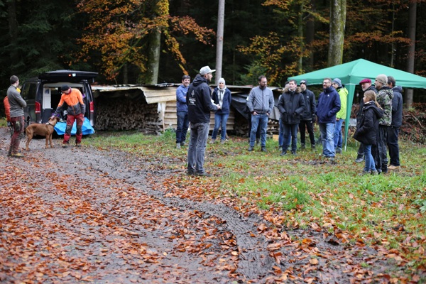 Alors que le ciel était gris et que la température n’était pas des plus clémentes, les collaboratrices et collaborateurs de la HEG-FR ont suivi avec le sourire, Gilles Suard, dans la forêt de la Faye, située au Nord de la commune de Givisiez. Après une petite marche à travers bois pour s’échauffer, la belle équipe a retrouvé la sœur de Gilles, Aline Suard, et les gardes-forestiers de la Bourgeoisie de Fribourg.