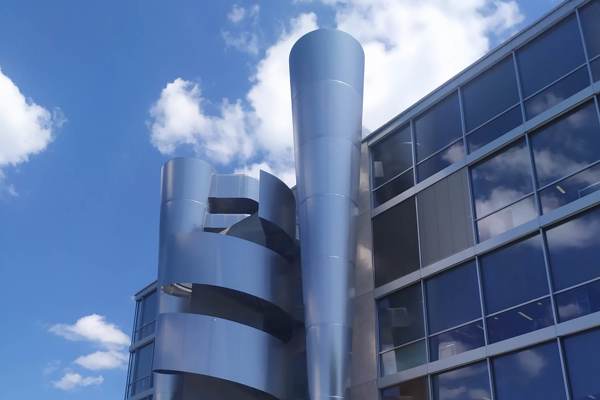 The new building in itself is a little jewel of sustainable architecture designed by the Japanese Shigeru Ban who won the contest of propositions for the new Omega site. There are big windows to get a lot of natural light and 2/3 of the building is made of swiss wood, epicéa. The famous architect also planned conical structures to filter the air and several grass islands outside to recollect rain water and also inserted solar panels on the south part of the roof and the parking. And the "clou du spectacle" is actually the heart of the building where the central stock shows off its innovative technology.
